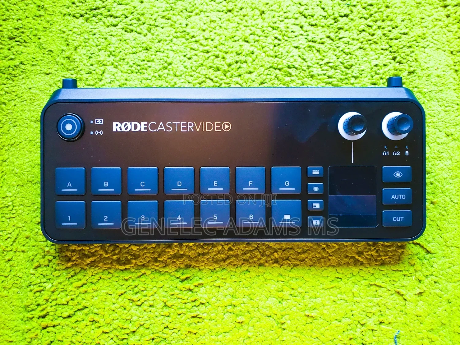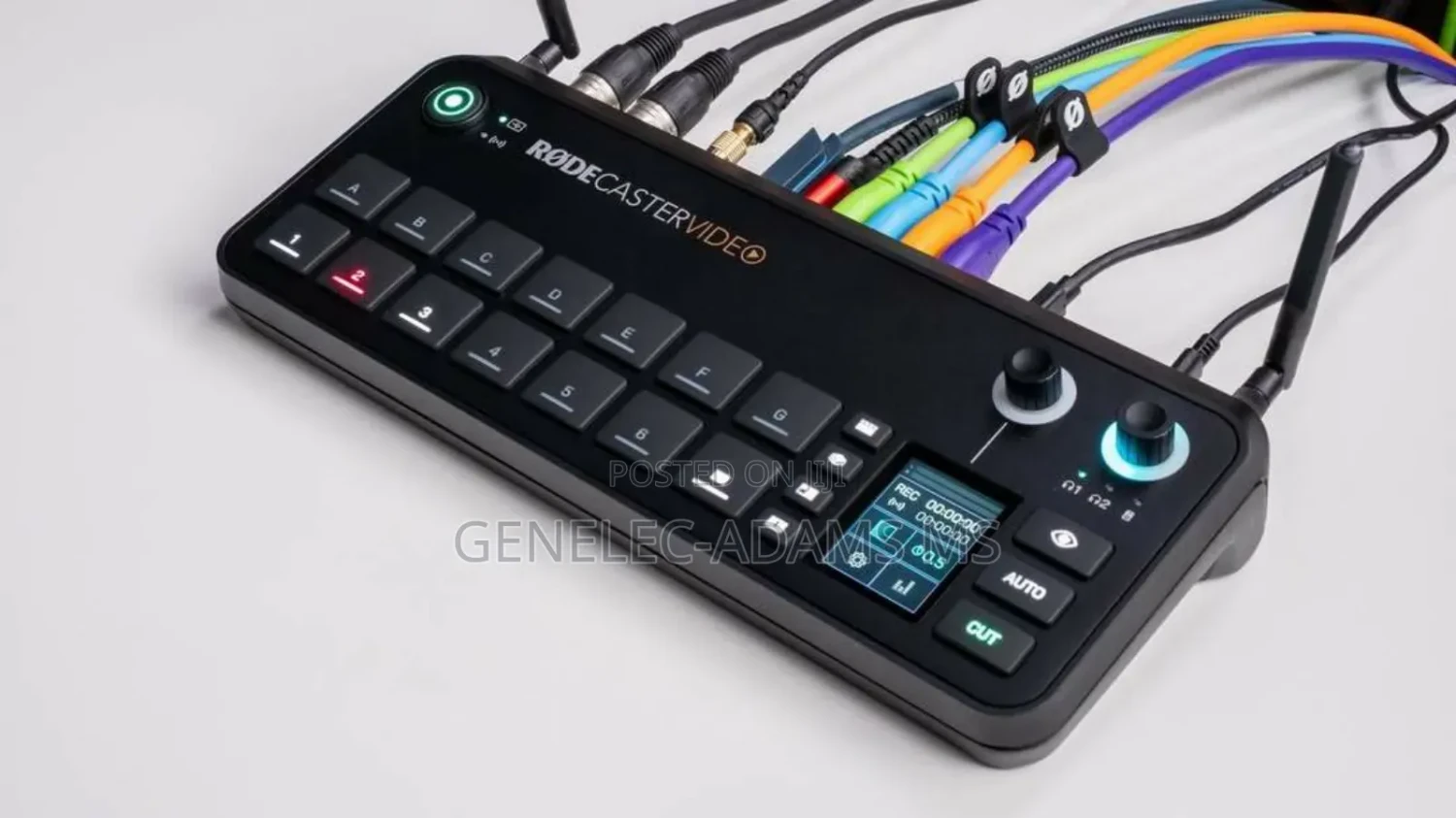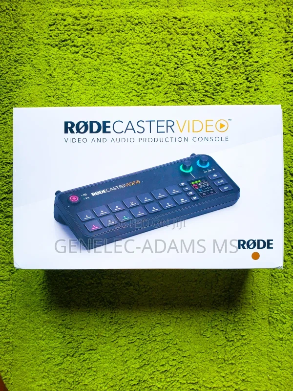 Latest powerful Video Switcher RodeCaster Video Video and Audio Production Console Direct RTMP streaming via Ethernet or WLAN Direct recording (H.264) to external USB drive) Separate ISO recording of six video sources plus programme feed) Two integrated wireless receivers for RØDE wireless transmitters Bluetooth 5.3 for stereo sources and phone calls Buttons: 7 x scene, 6 x input source, record, auto, cut, fade to black, media, overlay High-resolution 2" touchscreen Seven scenes programmable with multi-video layers, media and graphics Automatic switching of sources and scenes depending on the audio signal Automatic chroma keying Mic/Inst/Line inputs: Two XLR / 6.3 mm jack Neutrik Combo Video inputs (1080p) Great Product from Rode.