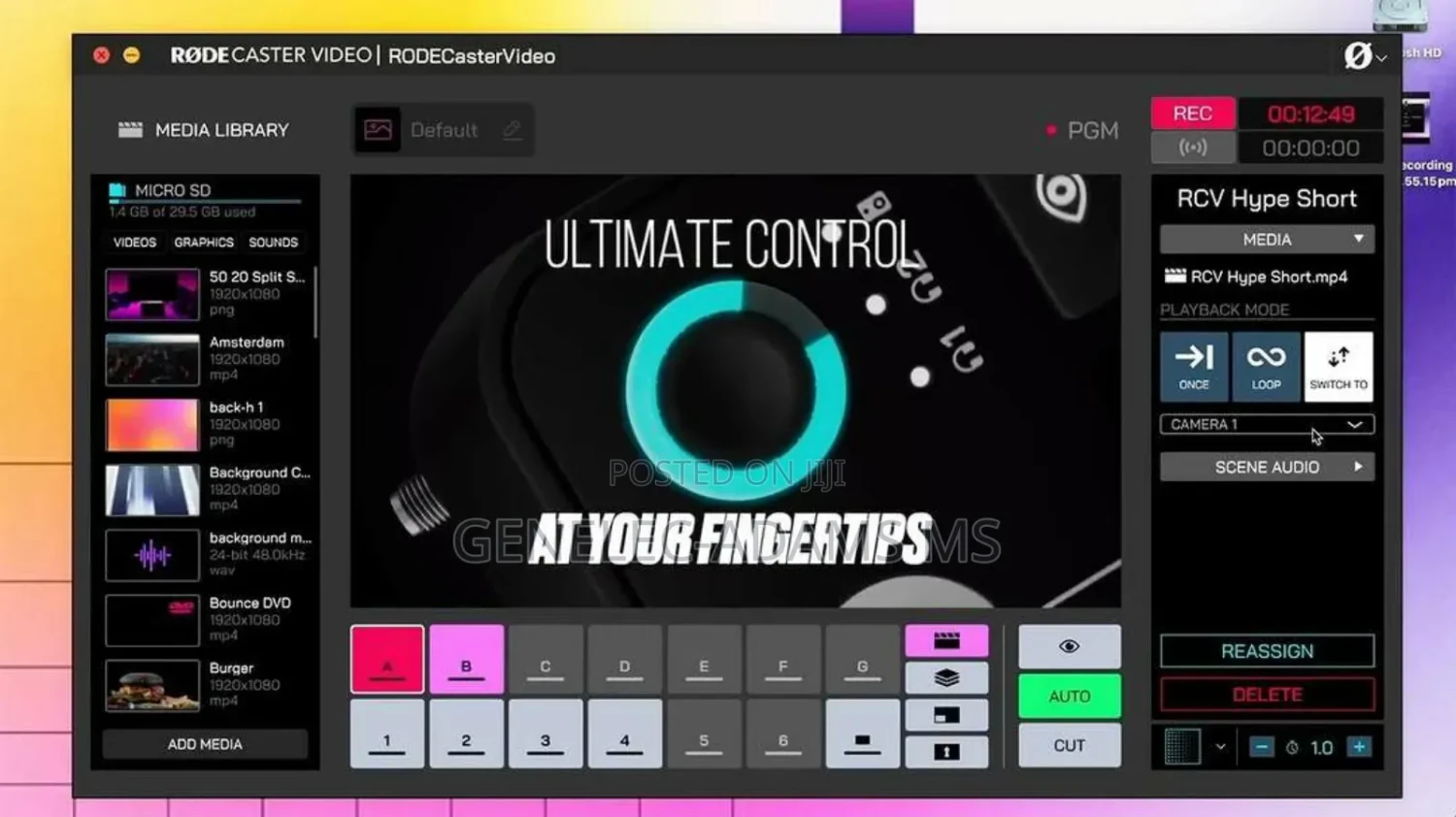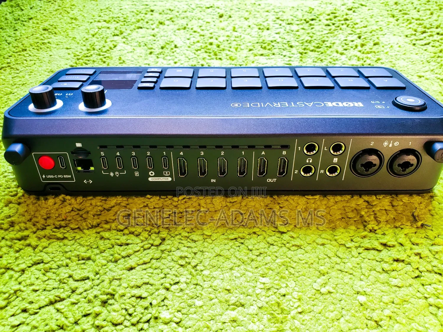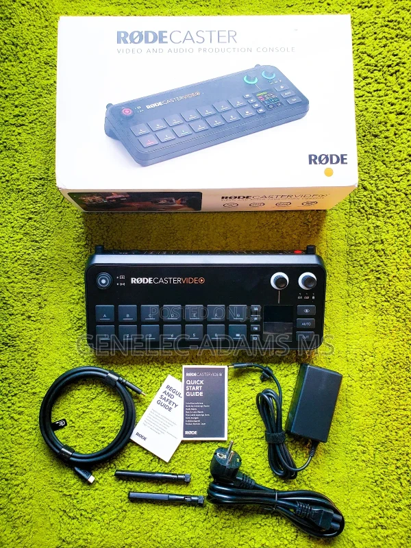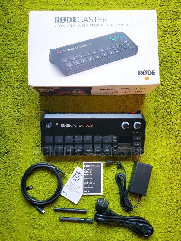 Latest powerful Video Switcher RodeCaster Video Video and Audio Production Console Direct RTMP streaming via Ethernet or WLAN Direct recording (H.264) to external USB drive) Separate ISO recording of six video sources plus programme feed) Two integrated wireless receivers for RØDE wireless transmitters Bluetooth 5.3 for stereo sources and phone calls Buttons: 7 x scene, 6 x input source, record, auto, cut, fade to black, media, overlay High-resolution 2" touchscreen Seven scenes programmable with multi-video layers, media and graphics Automatic switching of sources and scenes depending on the audio signal Automatic chroma keying Mic/Inst/Line inputs: Two XLR / 6.3 mm jack Neutrik Combo Video inputs (1080p) Great Product from Rode.