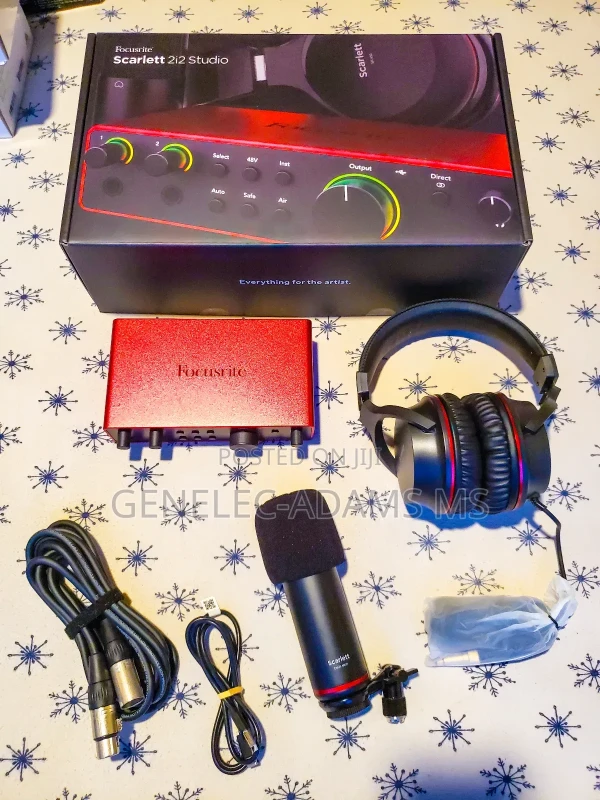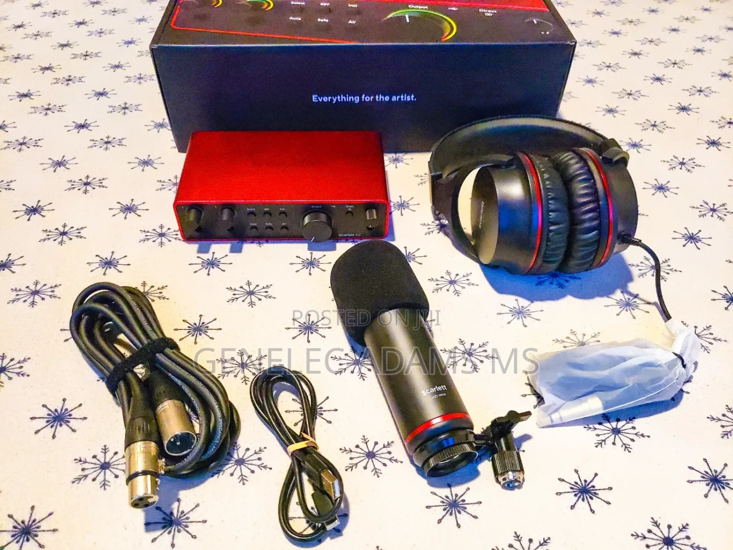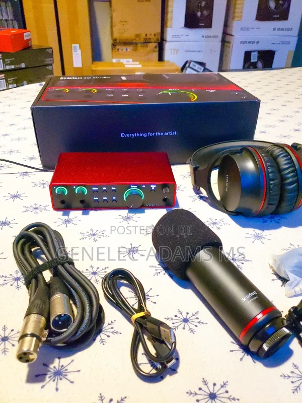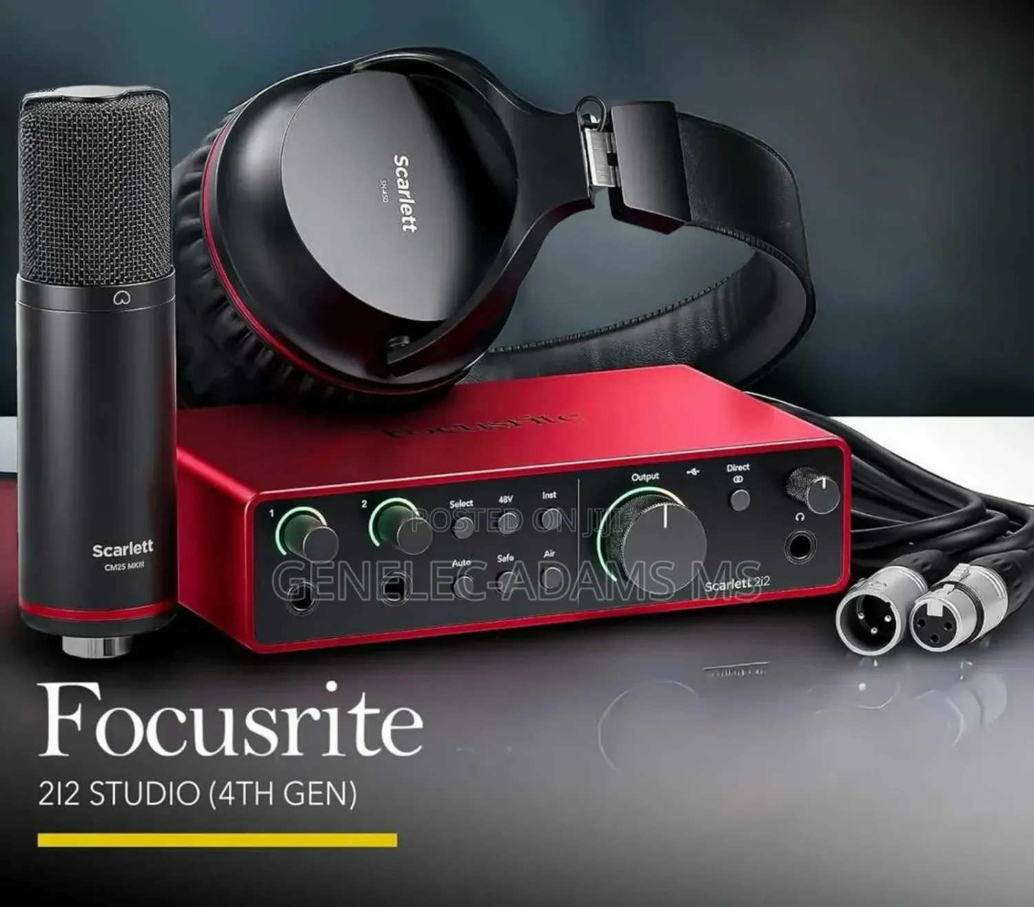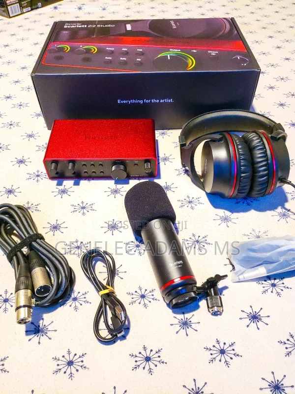 Recording set Consisting of a 2-channel USB 2.0 audio interface + CM25 MkIII condenser microphone + SH-450 studio headphones and a 3 m XLR cable Features of 2-channel USB 2.0 audio interface with USB-C connection: 24-bit / 192 kHz) Focusrite Rednet series converters with 120 dB 2 Scarlett microphone +48 V phantom power) Switchable Air functionAuto Gain, Clip Safe Loopback function Dynamic Gain Halos for quick and easy adjustment of the recording volumeUSB bus-powered USB-C connection for an external 5 V (1000 mA) power supply (not included in the scope of delivery Includes USB cable (type C to A) and Hitmaker Expansion software bundle ( Ableton Live Lite, Pro Tools Artist (three-month subscription), and Avid Complete Plugin Bundle) Focusrite CM25 MKIII microphone: Focusrite SH-450